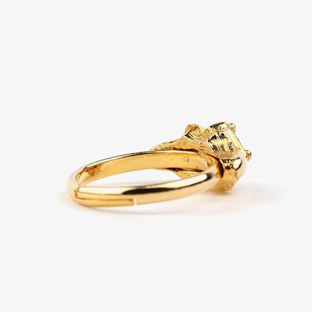 サイズは10号ほどですが、フリーサイズ仕様なので、指のサイズに合わせて多少の調節が可能です。その日の気分に合わせて着ける指を変えることができるので、さまざまな指につけてお楽しみいただけます。