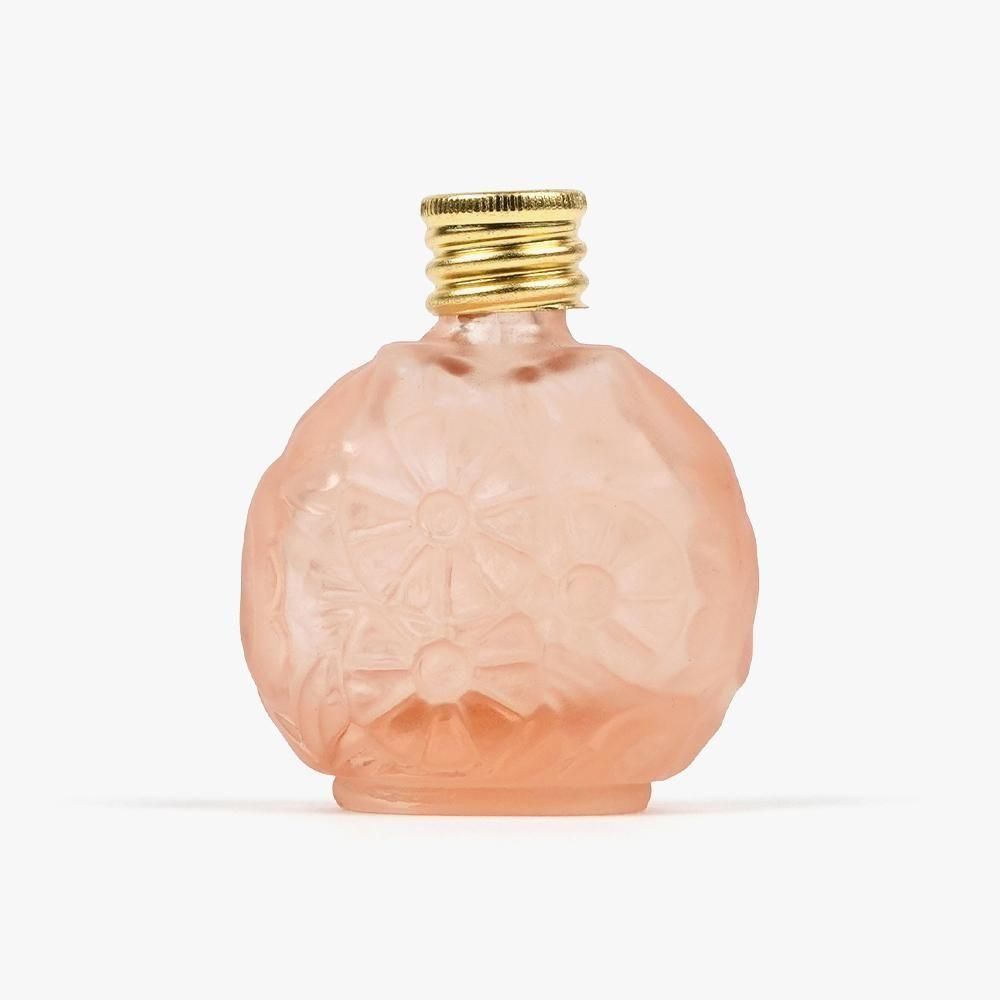 デイジーのような愛らしいデザインが目を引く、ガラス製のアトマイザーです。中央に3輪の花が施されており、まわりには葉もあしらわれています。手のひらに収まる可愛らしいサイズも魅力的。香水瓶として使用するだけでなく、お気に入りの場所に飾り、インテリアとしてもお楽しみいただけます。