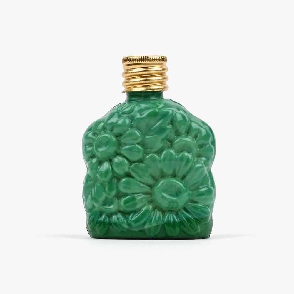 マーガレットのような、かわいらしい花がデザインされているガラス製のアトマイザーです。カワセミの羽のような鮮やかな緑色を意味する、翠色に惹き込まれます。手のひらに収まる可愛らしいサイズも魅力的。香水瓶として使用するだけでなく、お気に入りの場所に飾り、インテリアとしてもお楽しみいただけます。